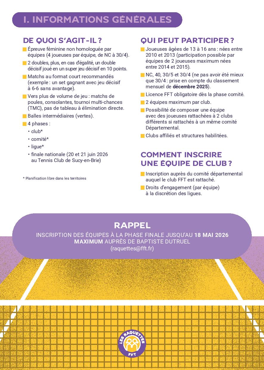• Licence FFT obligatoire dès la phase Comité.