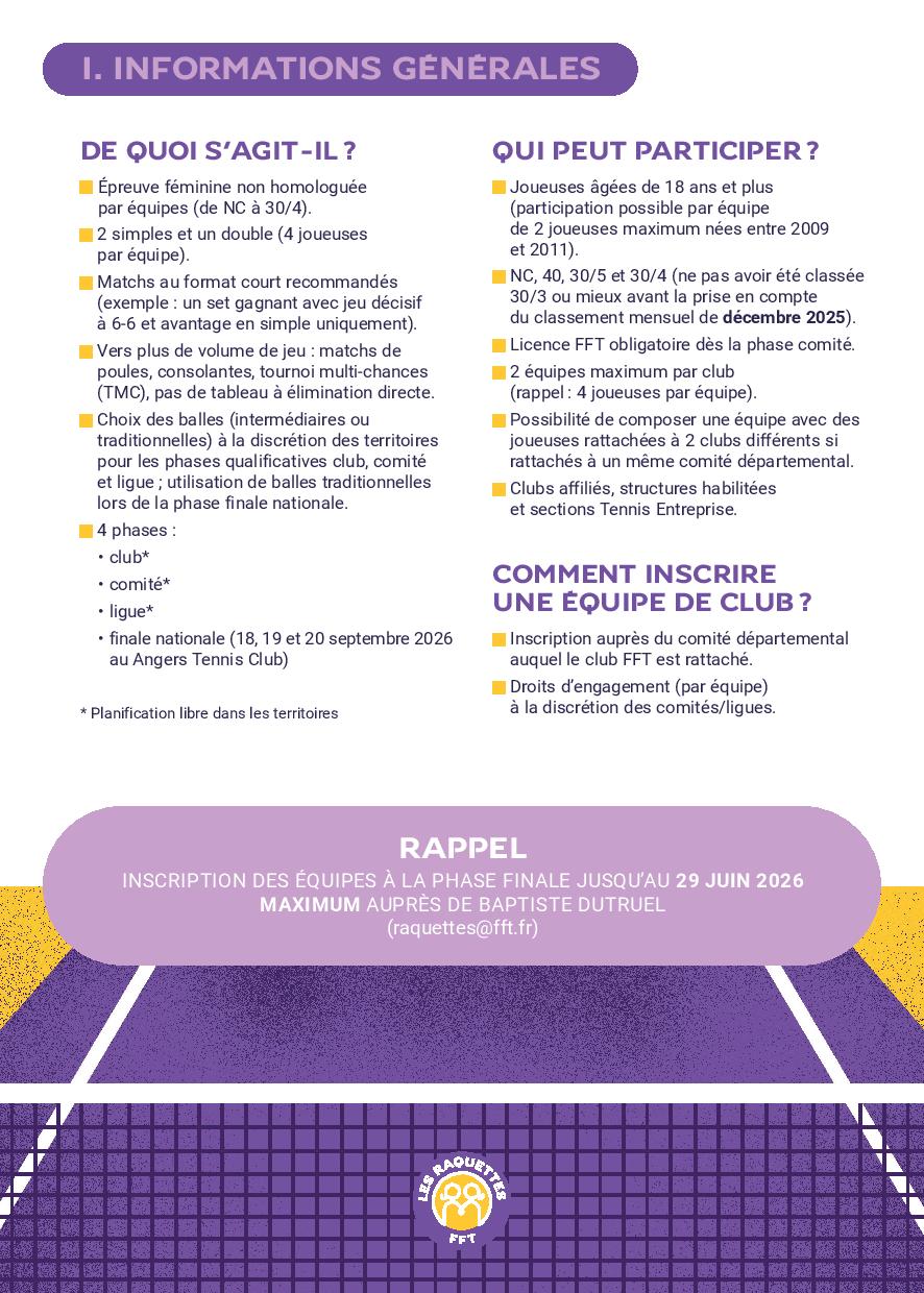 • Licence FFT obligatoire dès la phase Comité.