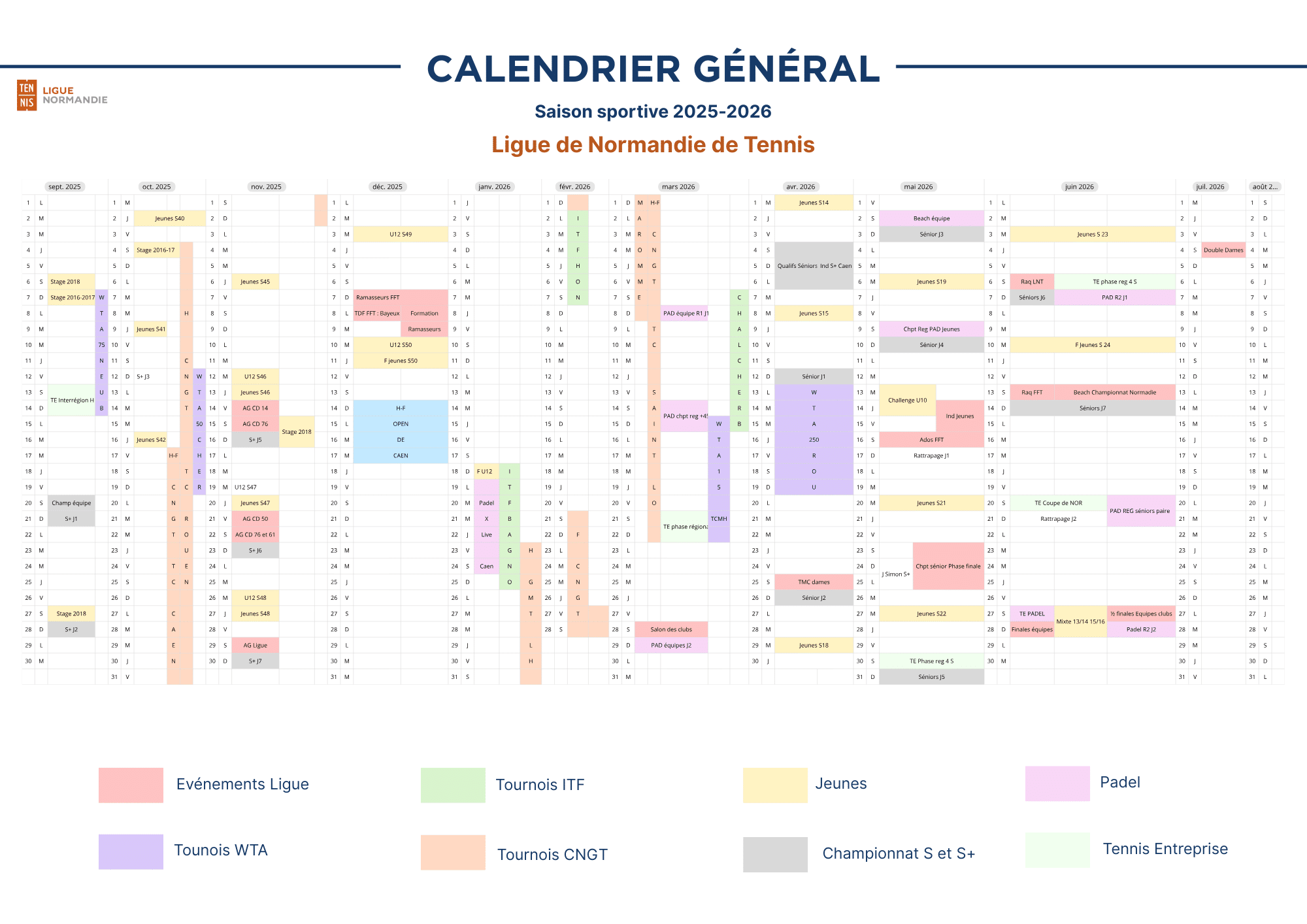Une saison tennistique en Normandie est rythmée par de nombreux événements : rassemblements, tournois professionnels, championnats régionaux, assemblées générales, et bien d’autres encore.
