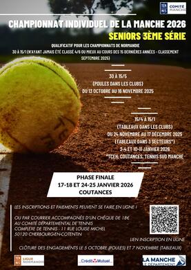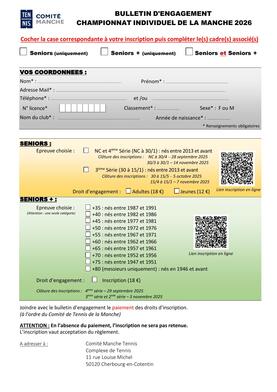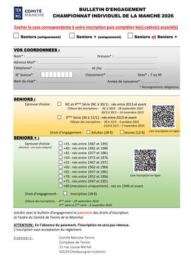 Vous trouverez ci-joint un formulaire d’inscription pour les personnes intéressées, à renvoyer au Comité Départemental de tennis, pour le vendredi 17 octobre 2025 DERNIER DELAI, accompagné du règlement.