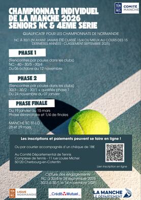 Le montant de l’engagement est de 12€ par équipe (chèque à l’ordre du Comité départemental de tennis de la Manche).